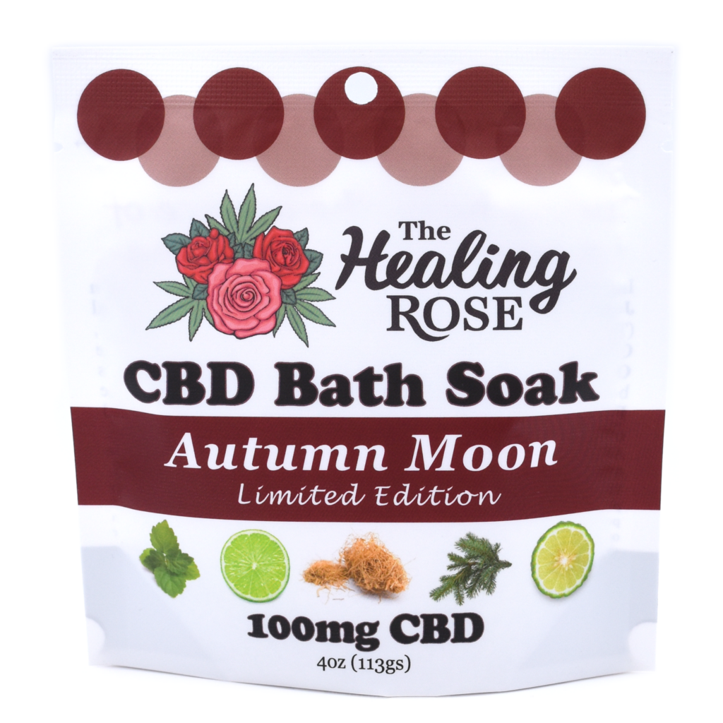 Practice self-care and treat yourself to a CBD Infused Bath Soak that uses all Organic Essential Oils & Organic Jojoba Oil combined with our French Grey Salt. This product smells incredible, with oils of Black Spruce, Patchouli, Lime, & Bergamot are chosen to help create the perfect sanctuary of peace and relaxation. This season we only have 4oz Autumn Moon Bath Soaks available.